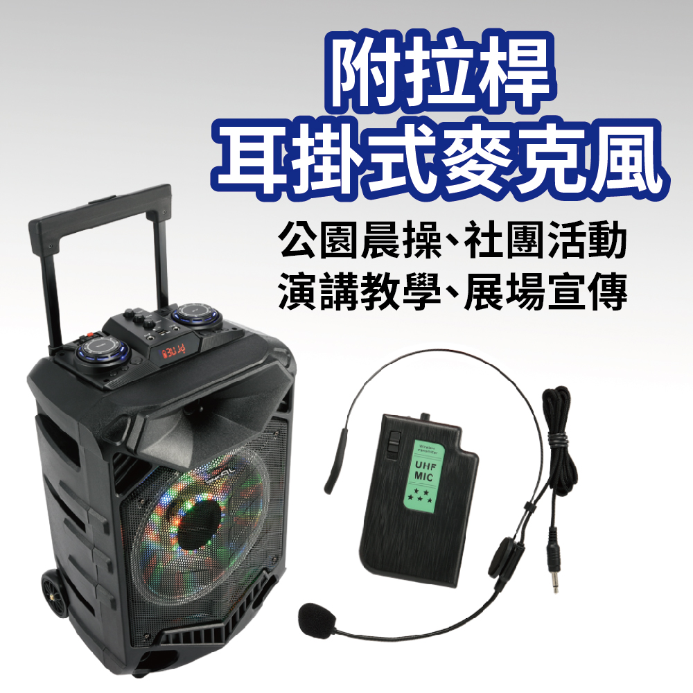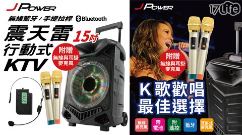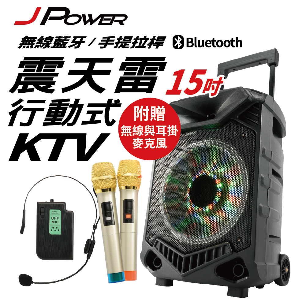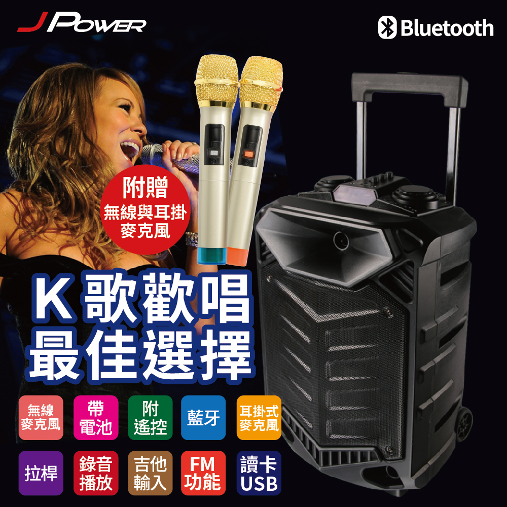 【 【JPOWER 杰強】12吋喇叭 震天雷戶外 行動KTV (附拉桿+耳掛式無線麥克風) 】