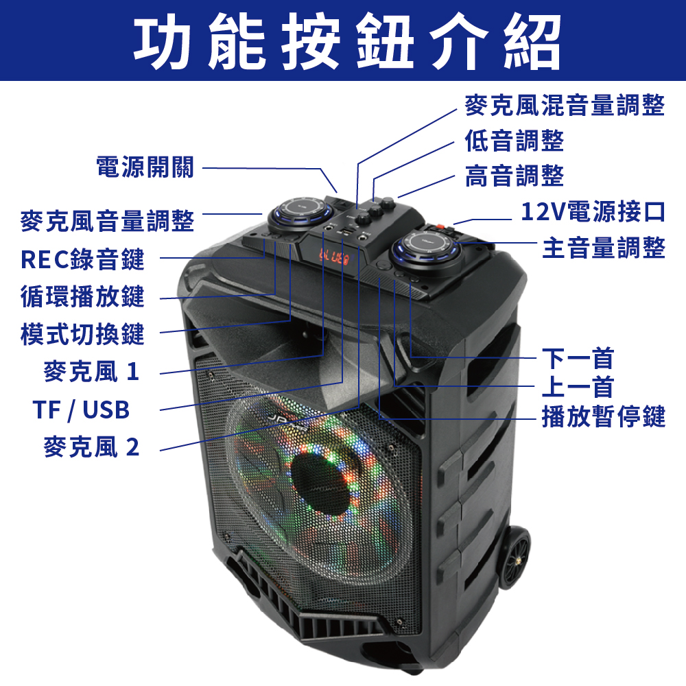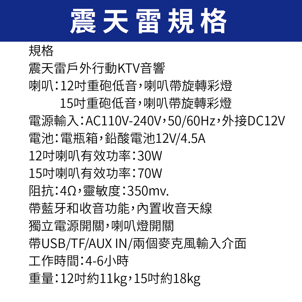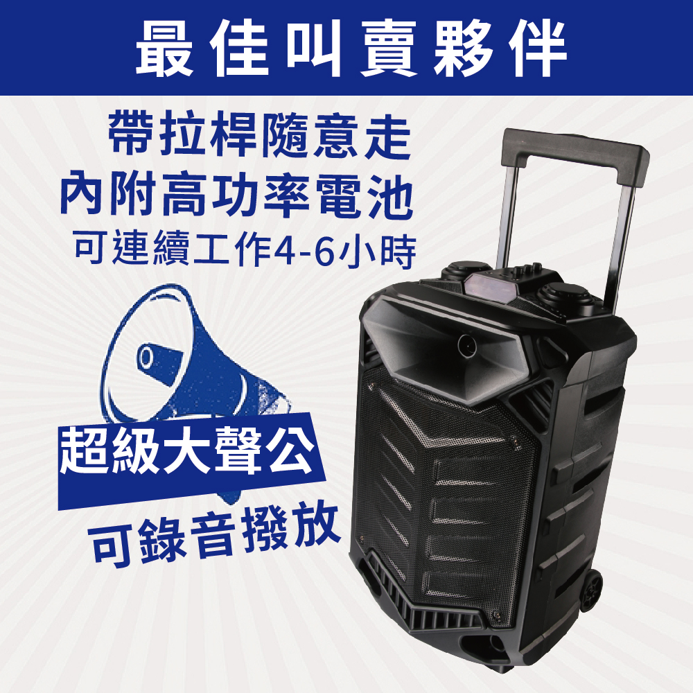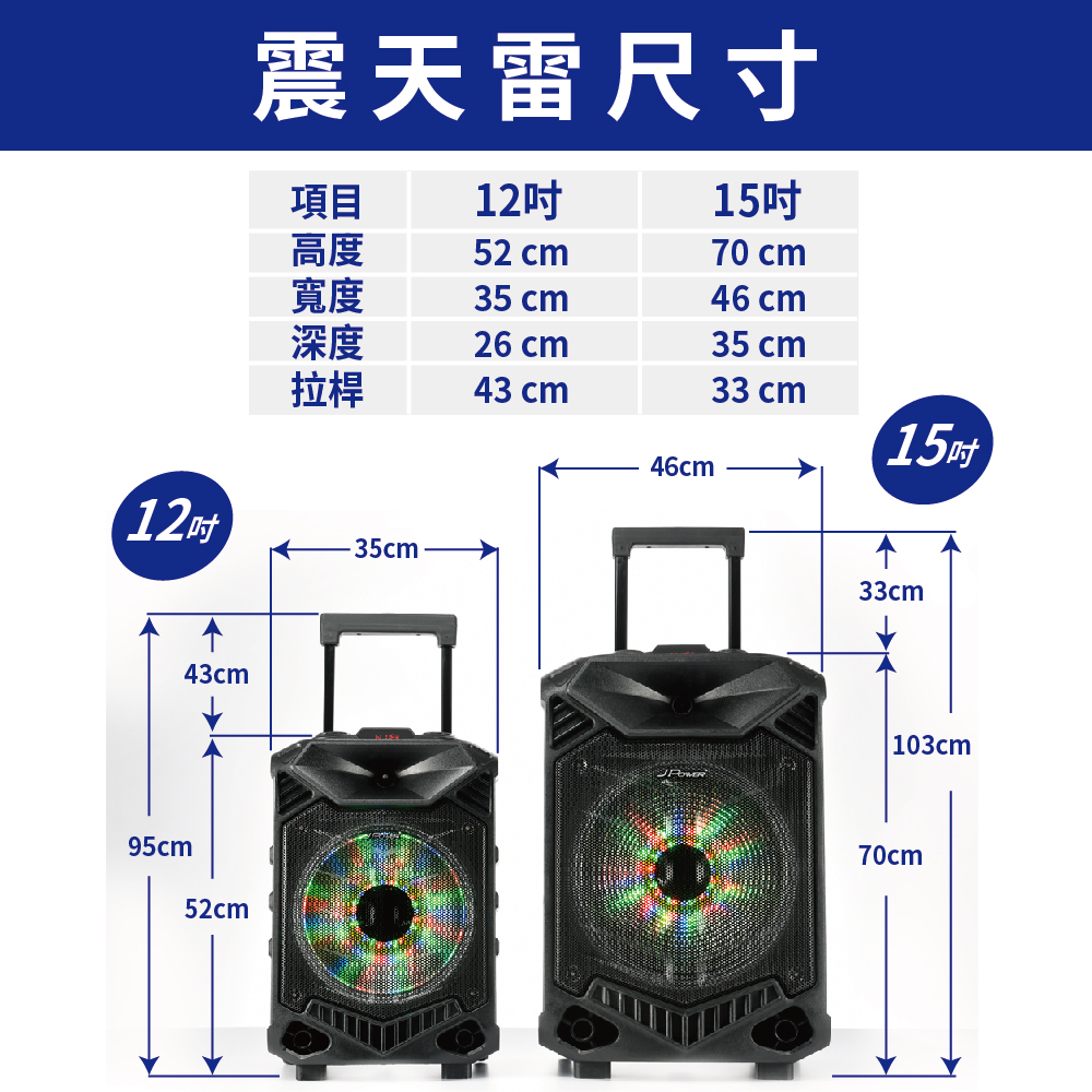 【 【JPOWER 杰強】12吋喇叭 震天雷戶外 行動KTV (附拉桿+耳掛式無線麥克風) 】